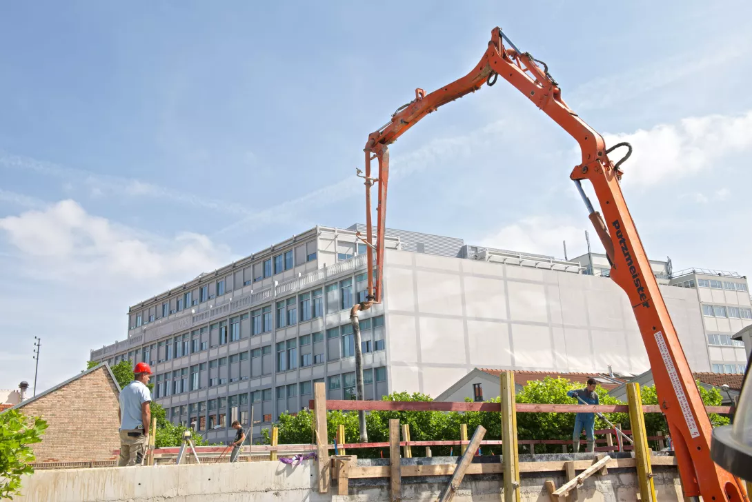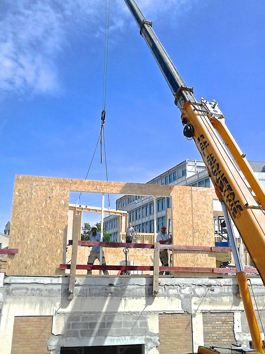 Construction du nouveau centre de restauration en R+1, structure mixte Bois/béton